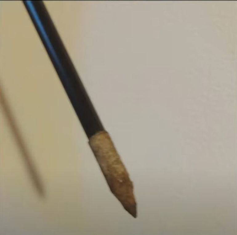 Fue en ese momento que su mamá salió a la calle para ver qué había sucedido, pero quedó asustada al encontrar una flecha de gran tamaño, que de milagro no alcanzó la cabeza de su pequeño.
