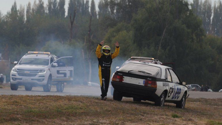 Aunque el Flaco no pudo estar en Roca este domingo en la previa de la final en la que se coronó Leonel Pernía –también a bordo de un Renault-, la emoción invadió a los presentes en el predio roquense cuando apareció el auto conducido por Miguel Ángel Guerra.