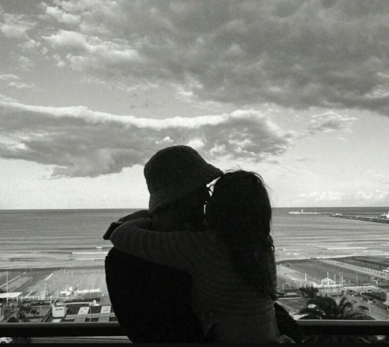 Celeste y Abril se mostraron super acaramelados desde sus redes sociales. Ambos compartieron las postales más lindas de la escapada romántica. La más tierna imagen es en blanco y negro, se muestran abrazados de espaldas mirando al mar.