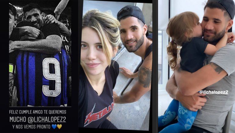 Lisandro y Mauro compartieron club en el Inter y la blonda usó una postal de ellos festejando para iniciar una catarata de publicaciones. “Feliz cumple amigo. Te queremos mucho Licha López. Y nos vemos pronto (junto a dos corazones, uno dorado y otro azul en clara referencia a a Boca)”, escribió Wanda, quien es fanática de River.