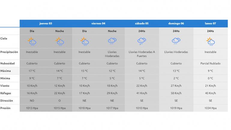 El lunes próximo las condiciones climáticas se presentarán similares con inestabilidad y un fuerte descenso de la temperatura, con una máxima que se ubicará cerca de los 9 grados.