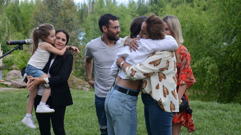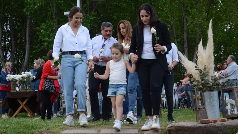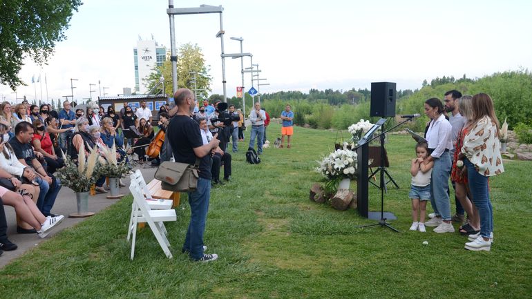Cada acontecimiento que se dio en el acto estuvo seguido de profundos abrazos, besos y lágrimas. Pero sin dudas, el más emotivo, fue el que dio pie al cierre del evento. Algunos presentes agarraron un clavel blanco, otros rosas blancas, y todos juntos se dirigieron a las orillas del río Limay para arrojar las flores al grito de "Pechi".