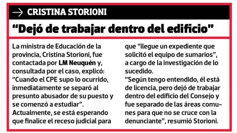 Otra denuncia por abuso sacude a una institución neuquina. En este caso, una mujer de 49 años acusó a un compañero de trabajo por sobrepasarse con ella dentro del Consejo Provincial de Educación (CPE). “Es una bestia y un depravado, nos manoseó y nos tocó durante mucho tiempo”, contó la víctima a LMN.