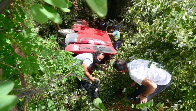Posteriormente, los efectivos trabajaron en el lugar para retirar la camioneta del zanjón.