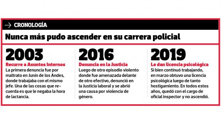 “Desde ese momento no ascendí, me llenaron de días de arresto, estuve con tratamiento, estoy medicada”, explicó y agregó que, en su lugar, el denunciado ascendió a comisario. “En febrero me reuní con el subjefe y me dijo que era injusta mi situación y que me iban a ayudar, pero no ocurrió nada”, afirmó.