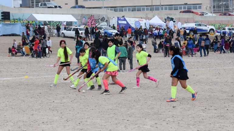 En otro punto del lugar, nenas de entre 6 y 7 años jugaban al hockey. En la cancha de al lado, un grupo de pibes se disputaba la pelota en un picadito. Todo en simultáneo y con públicos segmentados que -por ejemplo- se agolpaban para ver la exhibición de perros a cargo de la Policía Montada, que además brindó breves paseos a caballo para los más pequeños. Detrás, otros chicos hacían cola para ver la pista vial didáctica de 20 metros y jugar en los inflables.