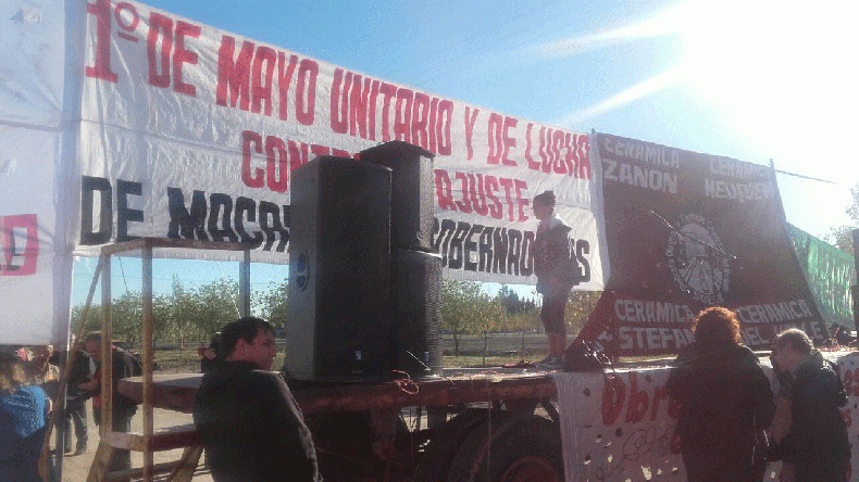 En el acto hubo diferentes oradores y participaron el Partido Obrero, PTS, Frente de Izquierda, trabajadores municipales, ATEN Capital, Zanon y otras organizaciones acompañaron a las 36 trabajadoras que mantienen la protesta en la puerta de la empresa.