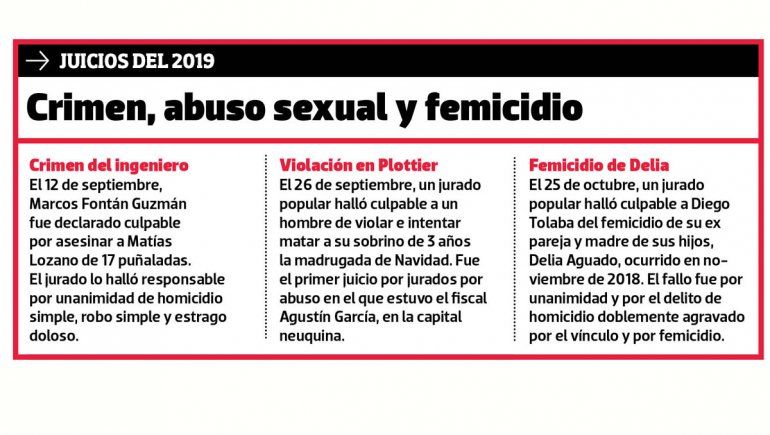 Con tres unidades fiscales a cargo, García ha participado como fiscal en 10 juicios por jurados en Neuquén. Este año fueron tres los casos que llegaron a ser juzgados bajo esta modalidad en la que la provincia es precursora, y en todos ellos el veredicto del jurado fue de culpabilidad.