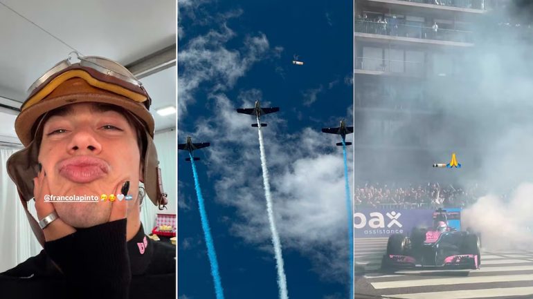 La actriz de Hadestown no solo acompañó a Colapinto en el evento, sino que también compartió un íntimo almuerzo este sábado en Cardales. Maia subió imágenes del espectáculo aéreo y un video donde se ve a Franco haciendo donas con su auto en plena calle.