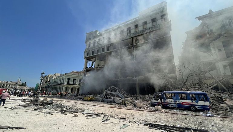 Tras el estallido, una nube de humo y polvo se extendía hacia Prado, la principal avenida del centro de La Habana, donde se encuentra el hotel, cuyos primeros cuatro pisos quedaron prácticamente destruidos, con montones de escombros y vidrios alrededor, al igual que la fachada del predio.
