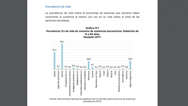El estudio, publicado en las últimas horas, consistió en una "encuesta sobre consumo de sustancias psicoactivas en población de 12 a 65 años" que se realizó a 911 personas de Neuquén y Plottier a través de cuestionarios conformados por 193 preguntas.