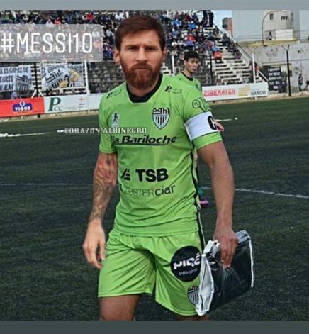 Mientras que en Cipolletti, ahora que ya no tendrán más el sintético sobre La Visera, también se atrevieron a la humorada. En este caso, con colores alternativas, el capitán de la Selección Argentina se deja ver con la verde del Albinegro en la previa a un match del Federal A.