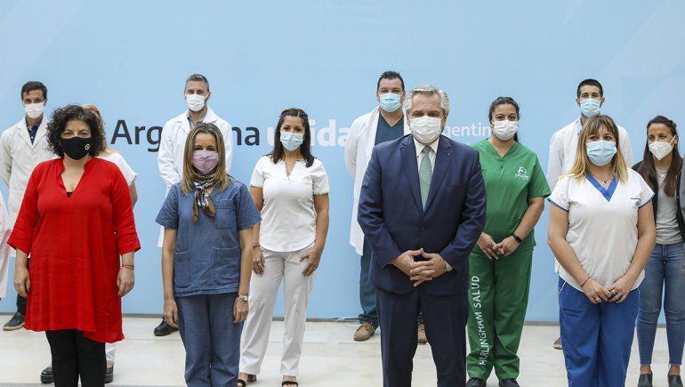 Acompañado por parte del Gabinete nacional, gobernadores, intendentes y referentes sanitarios de los distritos, Fernández reflexionó: "El tiempo fue pasando y fuimos controlando la pandemia y gracias a Dios logramos que a ningún argentino le faltara atención médica".