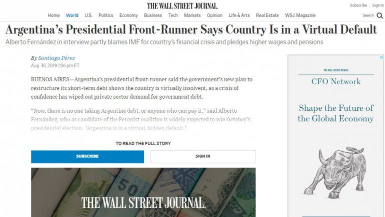 Fernández hizo declaraciones en el marco de una entrevista que ofreció al diario estadounidense The Wall Street Journal, publicada en su sitio web.