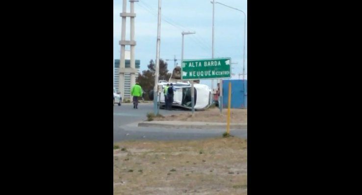 Un fuerte vuelco conmocionó en la tarde de este viernes a los vecinos de Alta Barda y la zona norte de la ciudad. La conductora de una Eco Sport blanca que venía en dirección al centro por la colectora chocó con una camioneta Berlingo que salía del segundo puente aéreo. Por la fuerza del impacto, el vehículo se dio vuelta. Gracias a que ambos llevaban puesto el cinturón de seguridad, no sufrieron heridas de consideración.