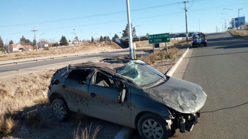 Fuentes policiales indicaron que el vehículo circulaba en sentido Neuquén-Centenario, cuando el conductor perdió el control del rodado y terminó volcando. El auto quedó incrustrado en el canal de desagüe que corre al costado de la ruta.