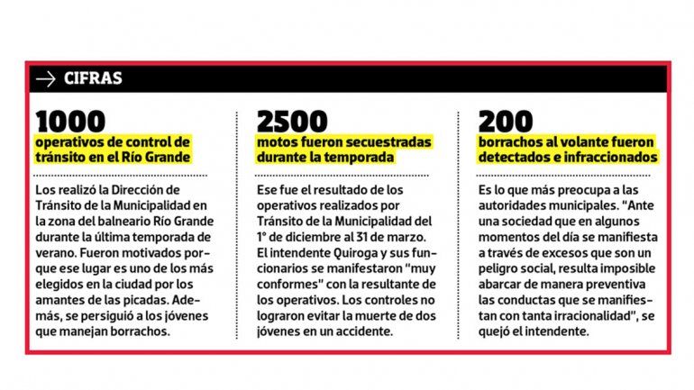 Tras la muerte de los dos motociclistas que se accidentaron la semana pasada mientras hacían piruetas en la zona de Río Grande, Quiroga manifestó su descontento por las “conductas irracionales” al volante e indicó con indignación que estos hechos son los que marcan las transformaciones de la ciudad. “Hay un grupo de gente que elige cumplir con las reglas, mientras que hay otras personas que prefieren ir por otro camino. Estos últimos nos obligan a adoptar diseños urbanos que se adapten a la realidad”, agregó el secretario de Obras Públicas, Guillermo Castejón, en una crítica directa a los que van a correr picadas a la zona del balneario Río Grande.