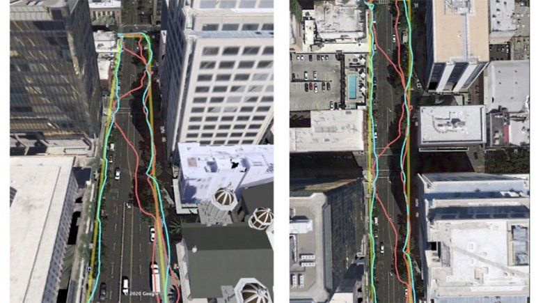 Este error de posición en el lado equivocado de la calle es causado por las señales reflejadas del GPS en las ciudades. La solución que propone Google es utilizar correcciones asistidas por mapas en 3D, y sólo es factible de ser realizada a escala por Google porque comprende modelos de construcción en 3D, mediciones brutas de GPS y aprendizaje por máquina.