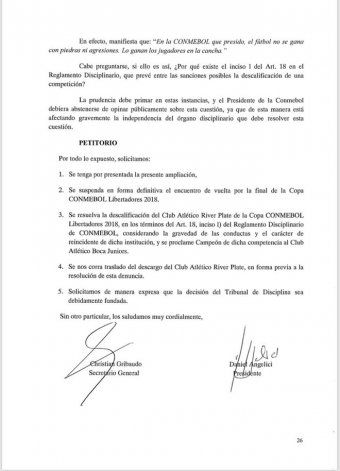 1) Se suspenda en forma definitiva el encuentro de vuelta por la final por la Copa Libertadores 2018.