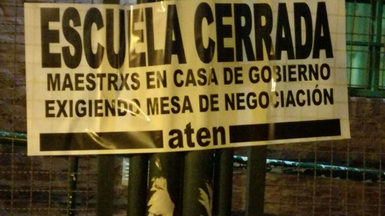 "Escuela Cerrada. Maestrxs en Casa de Gobierno exigiendo mesa de negociación", bajo la firma de ATEN, rezaba los carteles que ocupaban la escena de las escuelas, tanto de nivel primario como medio.