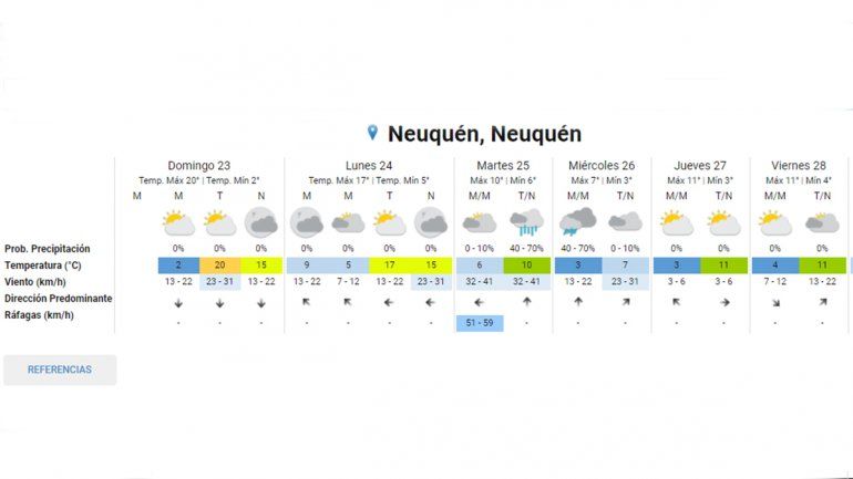De esta forma, para la jornada de hoy en Neuquén y alrededores (como Plottier, Centenario y Cipolletti) está pronosticada una mínima de 2°C, mientras que la máxima llegará a los 20°C. El cielo estará “parcialmente nublado”. En tanto, para mañana (lunes 24 de agosto), la temperatura oscilará entre 5°C y 17°C. El cielo se mostrará “mayormente nublado”.