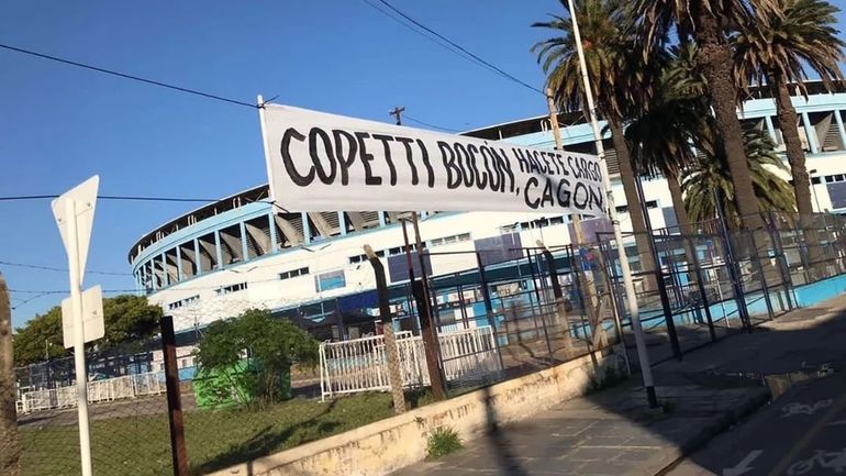 Hinchas de La Academia colgaron trapos en las inmediaciones del Cilindro, tildando al plantel de "pecho frío". Copetti fue quien más la ligó: "Bocón".