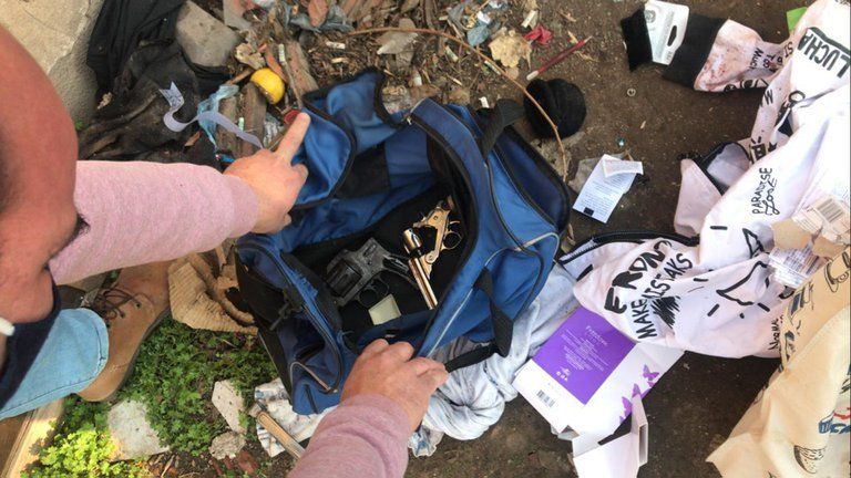 Según las fuentes, dentro de un bolso color azul la Policía encontró dos revólveres calibre 32, uno de ellos con aparentes manchas de sangre en el caño. "Aparte de haber sido apuñalada con la tijera, la mujer fue golpeada con un elemento contundente y no descartamos que haya sido con esa arma de fuego", comentó una fuente.