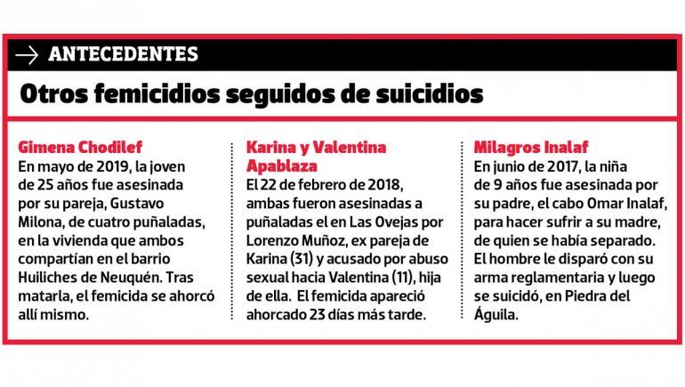Fuentes consultadas por LM Neuquén confirmaron que la mujer era Celeste Saavedra y el hombre, Oscar Retamal, una pareja que vivía en la localidad de Tricao Malal. Además, se supo que la mujer ya había radicado una denuncia por amenazas, la cual derivó en una restricción de acercamiento que finalizó en diciembre pasado. Tras ello, la mujer se mudó a otra ciudad.