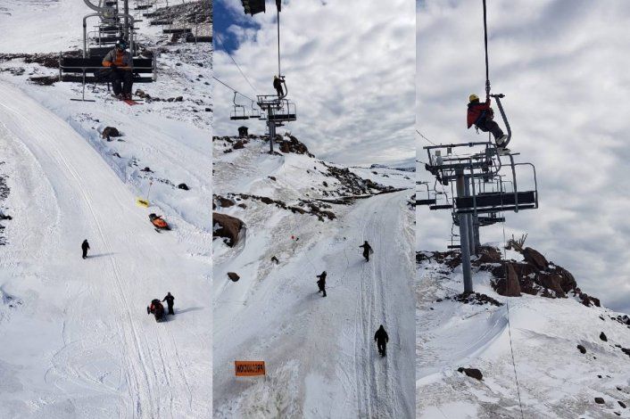 La maniobra de rescate la protagonizó un hombre que se subió a una torre con un arnés y una roldana en el cable de la telesilla. Así fue descendiendo, silla por silla, para bajarlos a todos. "Me colocó un arnés, y las personas que estaban abajo, en la pista, controlaban mi peso a medida que me iban bajando", graficó.
