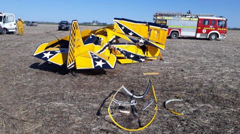 La aeronave, con la que había hecho una demostración semanas atrás en la última presentación del Turismo Nacional en el circuito de Rosario, quedó destruida. En el lugar trabajaron Bomberos y Policía.