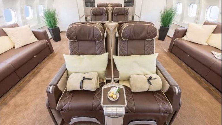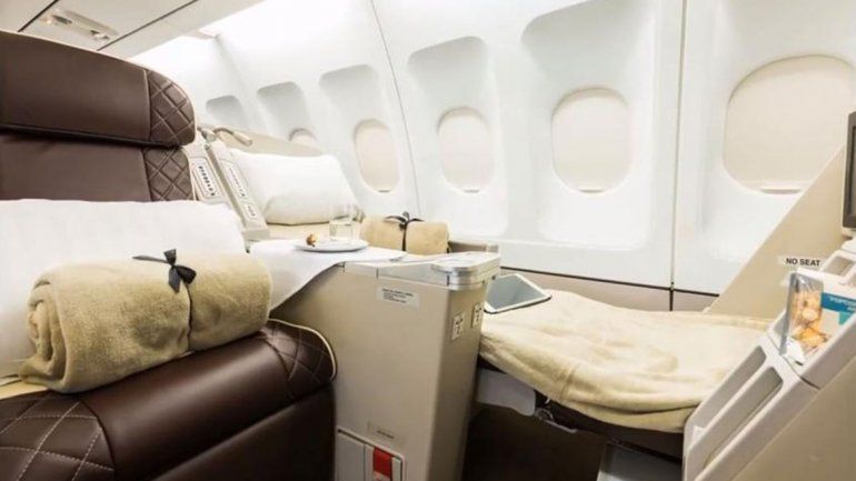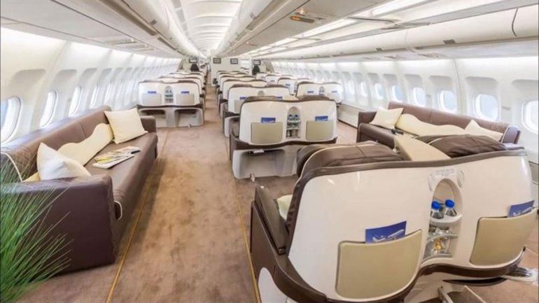 Se trata de un Airbus 340-300vip francés, de la empresa Flyzar, con capacidad para 90 pasajeros y todos los asientos se hacen cama, wifi, sistema de entretenimiento y catering personalizado.
