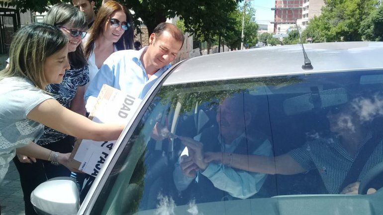 Dada su edad y la dificultad para caminar, la presidenta de mesa y los fiscales de las listas, le acercaron la urna al auto, sobre calle Salta, para que pudiera sufragar.