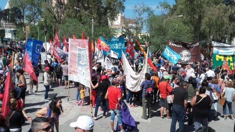 La medida de fuerza fue convocada en repudio al desalojo policial que dejó tres heridos y a la convocatoria se plegaron ATE, ATEN, Adunc, Uocra, Sejun y otras organizaciones sociales y de derechos humanos.