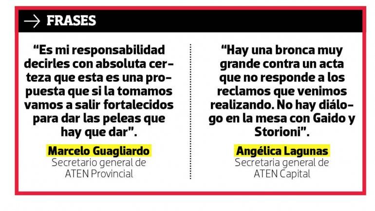 Los números no son los que esperaba el secretario general de ATEN provincial, Marcelo Guagliardo, quien ayer por la tarde públicamente llamó a que se acepte la oferta del Gobierno, con el argumento de que “el contexto nacional y provincial es muy desfavorable y casi nadie logró más de un 15%”.