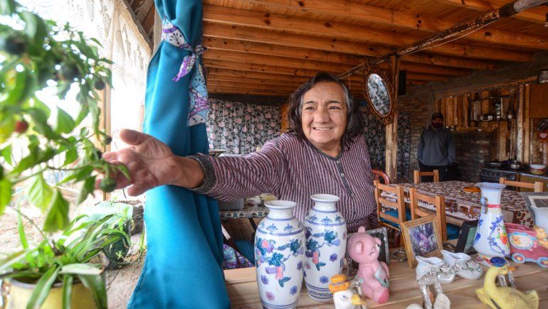 Hace menos de un mes que terminó su casa, y solo los invitados y su marido pueden percibir el olor a la madera recién laqueada. La calefacción es con un fogón a leña que está a un costado del salón al lado del dormitorio. No hay puertas interiores y la única separación es una cortina. Cocina en un horno a garrafa y tanto el pan o las milanesas que vende tienen la cocción cronometrada. “Acá no funciona el olor a tostado para sacar el pan”, dijo, tras sonreir.