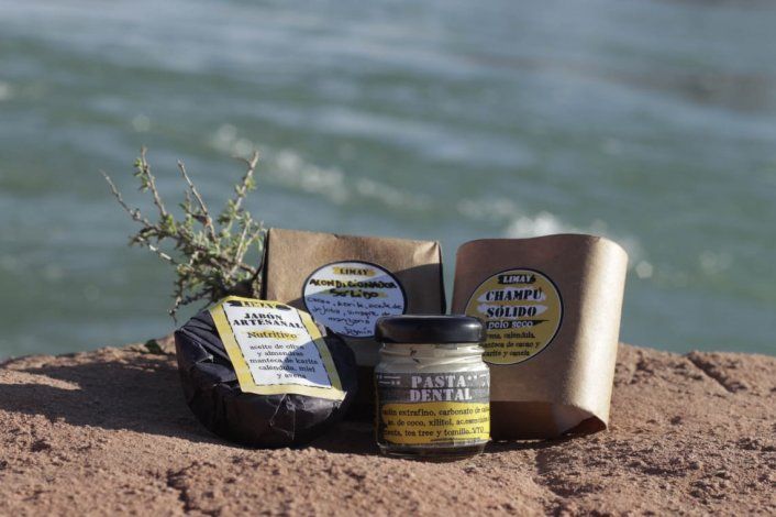 Limay fitocosmética produce jabones de ducha, de mano, detergentes, desodorantes y pastas dentales naturales con plantas autóctonas como base. La jarilla, especie que abunda por estos lados es uno de los estandartes que utiliza Luciana para sus productos.