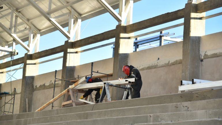 El intendente Mariano Gaido recorrió en la mañana de este jueves los avances e la obra a la que calificó de “un mini Ruca Che moderno de 1.500 metros cuadrados que contará con tribunas para 700 personas, vestuarios, baños todo calefaccionado con losa radiante para poder realizar actividades de manera confortable durante el invierno”.