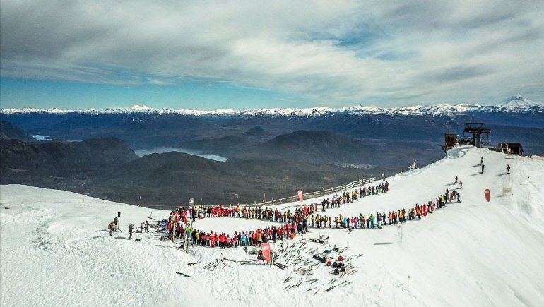 Grandes y chicos asistieron a la nueva convocatoria de Chapelco para realizaar el emblemático "lazo rosa humano" en la cumbre de su Cerro Teta, y así visibilizar su campaña sobre la importancia de la detección temprana del cáncer de mama y concientizar sobre la importancia de los controles médicos periódicos.