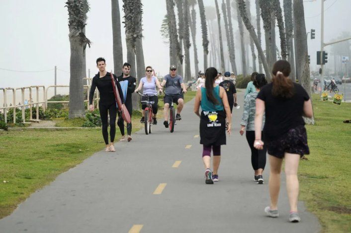 Los bañistas acudieron a las playas del Condado de Orange, al sureste de California, que se encuentran abiertas por decisión de las autoridades locales. Hasta allí se acercaron habitantes de Los Ángeles y San Diego, donde la costa permanece cerrada al público.