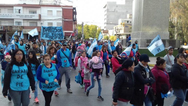 Una vez más, la organización Barrios de Pie realizó una protesta por el centro neuquino, luego de concentrarse en el monumento al General San Martín marcharon a Casa de Gobierno y la Municipalidad para entregar un petitorio en el que exigen "medidas concretas" con el fin de paliar la situación económica que afecta directamente en la alimentación de los más chicos.