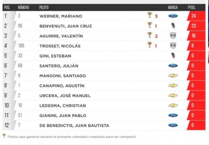 Benvenuti ganó la etapa regular del campeonato y con la victoria consumada. Sin duda, está entre los pilotos candidatos para pelear la Copa de Oro, que se pondrá en marcha el próximo fin de semana en el autódromo de Buenos Aires.