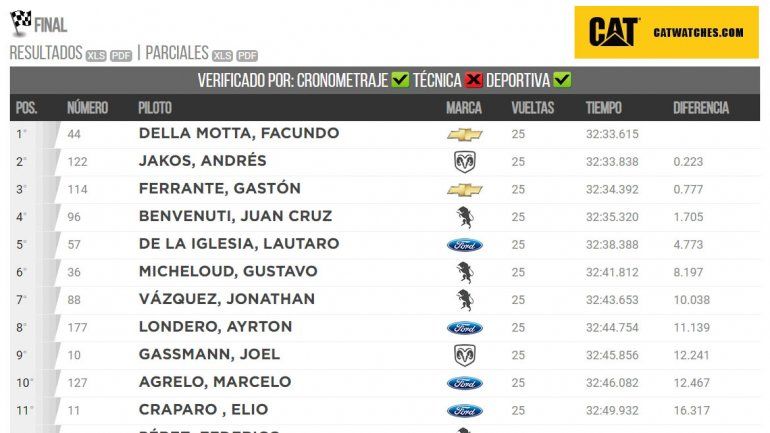 El sanjuanino Della Motta consiguió de esta manera su primer éxito en la categoría, siendo su temporada debut para el campeón del TC Mouras. Y no es una victoria más, ya que la misma lo habilita para poder luchar por el torneo teniendo en cuenta que por ahora estaría ingresando a la Copa de Plata a través del sistema de “tres de último minuto”.