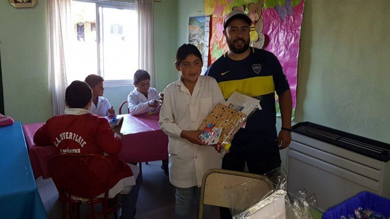 La escuela cuenta con una niña en Jardín, una en primer grado, dos chicos en tercer grado, un niño en quinto y una niña en sexto que recibieron un kit y un presente de la peña boquense.