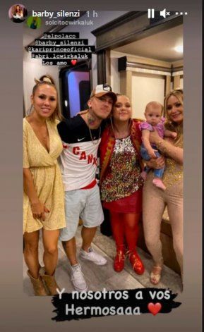 Terminado el espectáculo, Barby y El Polaco se acercaron a los camarines y posaron sonrientes junto a Karina y Sol, quien compartió la postal en Instagram y escribió: “Los amo”, arrobando tanto a sus padres como a Barby.