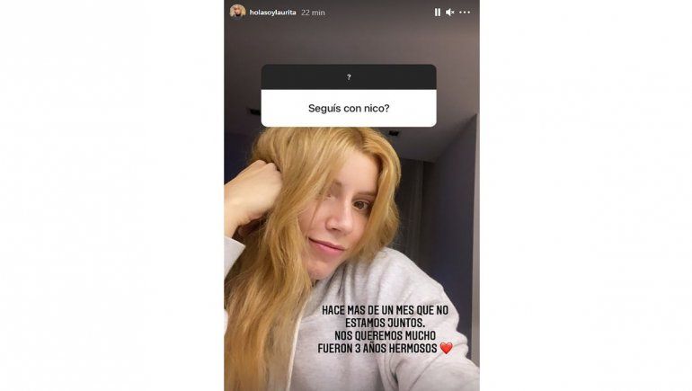 En la noche de este lunes, Laurita Fernández sorprendió a todos al confirmar su separación de Nicolás Cabré. “Hace más de un mes que no estamos juntos. Nos queremos mucho. Fueron tres años hermosos”, escribió la actriz ante la inquietud de uno de sus más de cuatro millones de seguidores de Instagram.