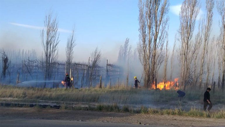 “A las 16.30 comenzó este incendio en el del pasaje Shull de Vista Alegre. Con las dotaciones, protegimos nueve viviendas para que no las alcanzaran las llamas. Sólo hubo daños materiales como alamedas y áreas productivas”, relató el segundo Jefe del Cuartel de Bomberos Voluntarios de Centenario, Patricio Álvarez.