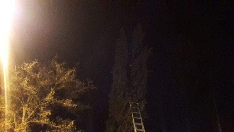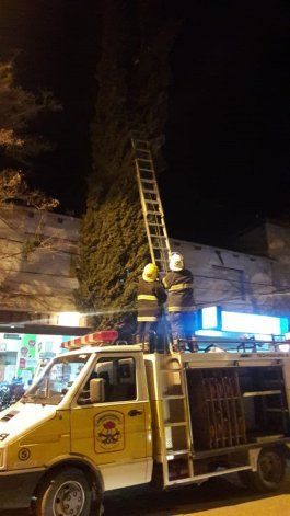 Un gran despliegue de Bomberos Voluntarios de Chos Malal motivó el rescate de un gato en un pino de gran porte en el centro de la ciudad del norte neuquino.