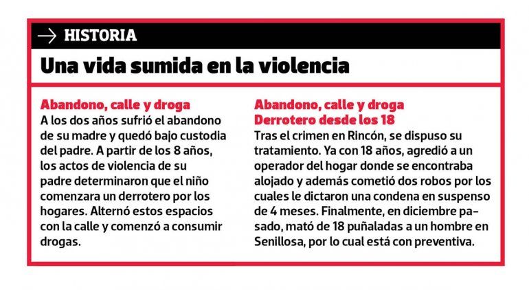 El crimen ocurrió el 14 de enero de 2018 en la localidad petrolera de Rincón de los Sauces. En ese entonces el autor tenía 17 años, pero el juez advierte que el joven “tiene toda una historia de abandono, desamparo e ineficiencia de las instituciones de la protección desde su temprana infancia, por lo que el Estado tuvo 15 años para evitar este crimen”.