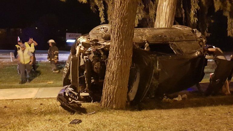 Según publicó el portal Centenario Digital, el vehículo se despistó hacia la banquina, chocó contra unos troncos, volcó y quedó incrustado entre dos eucaliptos del Paseo Néstor Kirchner.