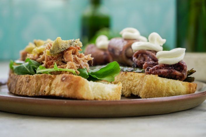 Bruschettas marinas: Atún y calamares